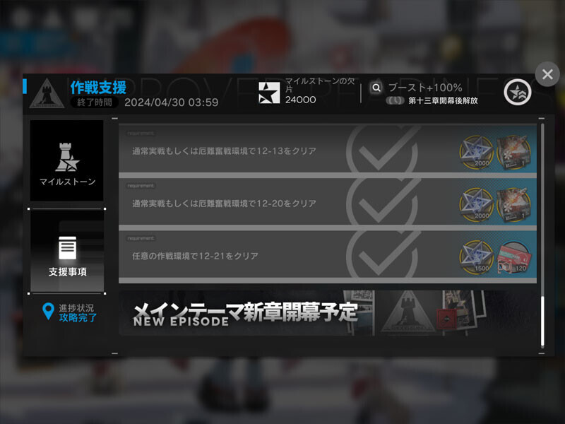 今日、ログインすると、新章準備イベントが起動しましたが・・・