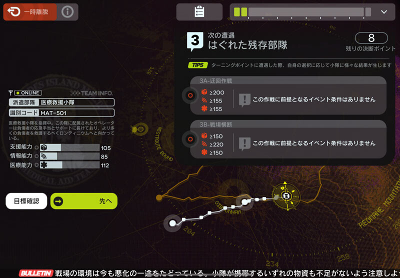 次の分岐点に必要な目標ステータスがわかります